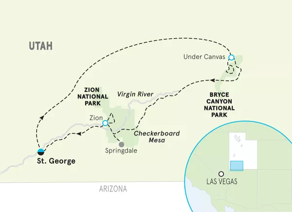 Your expedition begins in Bryce Canyon National Park, a labyrinth of surreal rock formations. You’ll hike the famous Queen’s Garden Trail, winding through a massive amphitheater of towering hoodoos and wind-carved spires straight out of a sci-fi film. Explore deeper canyons and spot ancient bristlecone pines clinging to the cliffs—some thousands of years old. Then, ride quiet desert paths past the majestic Checkerboard Mesa en route to legendary Zion National Park. Here, you set your own pace: challenge yourself with a heart-pumping ridge hike, or wade through the cooling waters of the world-famous Narrows. Conclude your final day with an awe-filled walk along the Virgin River beneath towering Navajo sandstone walls.